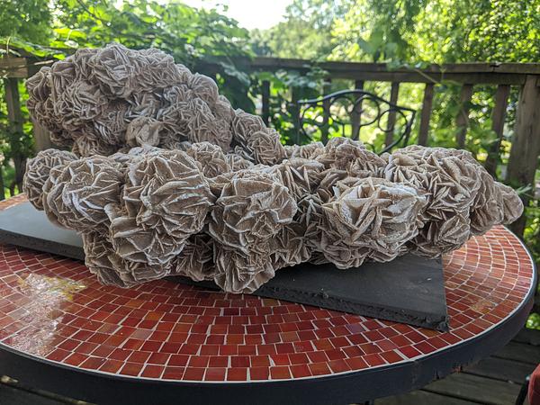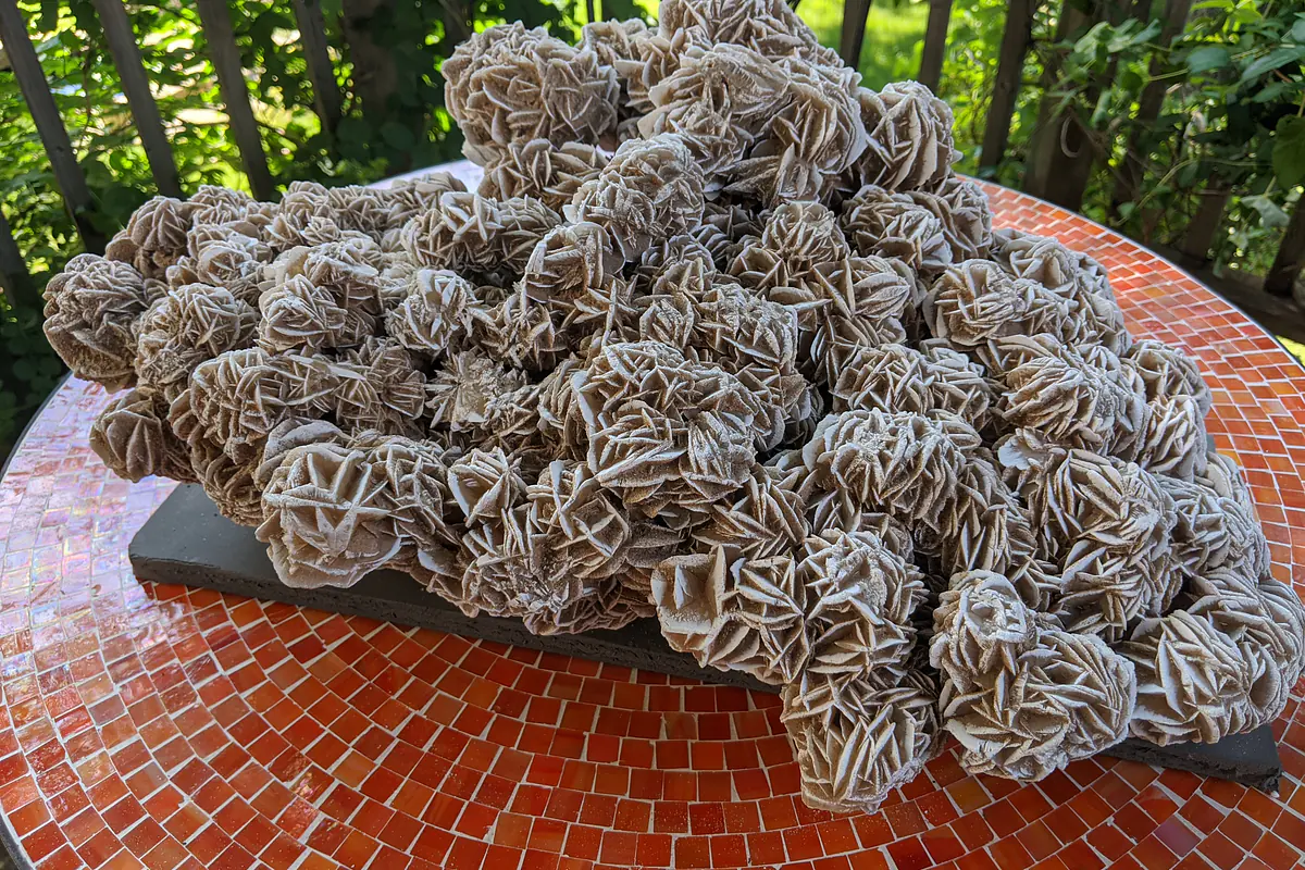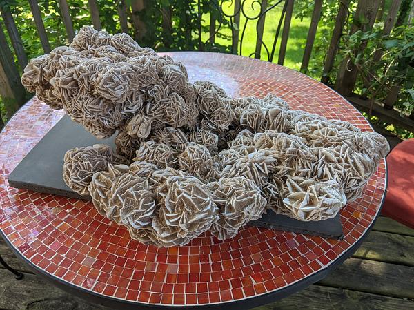 Meggy & Craig ordered a variety of rocks from people at the big show in Tuscon, Arizona. There was a mixup with this particular specimin - we were expecting a different shipment and received this one by mistake. Regardless, it's a beautiful desert rose and we were happy to receive it.